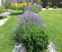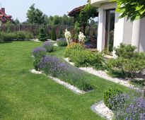 Ogród o charakterze śródziemnomorskim, którego dwoma głównymi, zielonymi elementami są drzewa o olbrzymich liściach - Katalpy w kulistej odmianie oraz otaczające dom łukowate rzędy lawendy uwalniające zapach na wydzielona nimi zieloną ścieżkę. Układ ogrodu oparty na łukach wyprowadzonych z bliskiego sąsiedztwa domu, daje wrażenie otoczenia roślinami a tym samym poczucie intymności i relaksu ten ostatni podkreślono stosując odmiany wysokich traw ozdobnych swobodnie kołyszących się na wietrze.